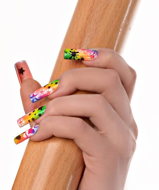 Create a salon-style design using any airbrushing techniques on 10 tips with any nail shape and length.